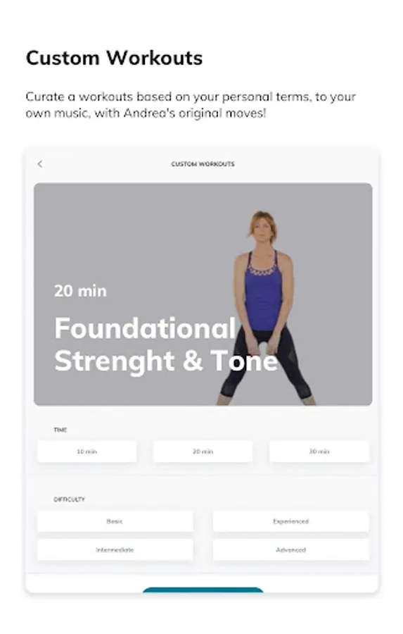 Whether you need a kickstart, want to avoid the dreaded plateau or are simply combating boredom, Andrea will give you optimized options that level up as you do and keep you from ever feeling alone!
