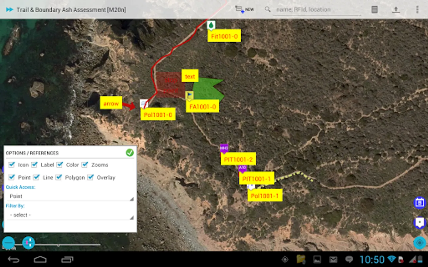 • Mapping, collect data rich points, lines, polygons, and custom overlay - text or image