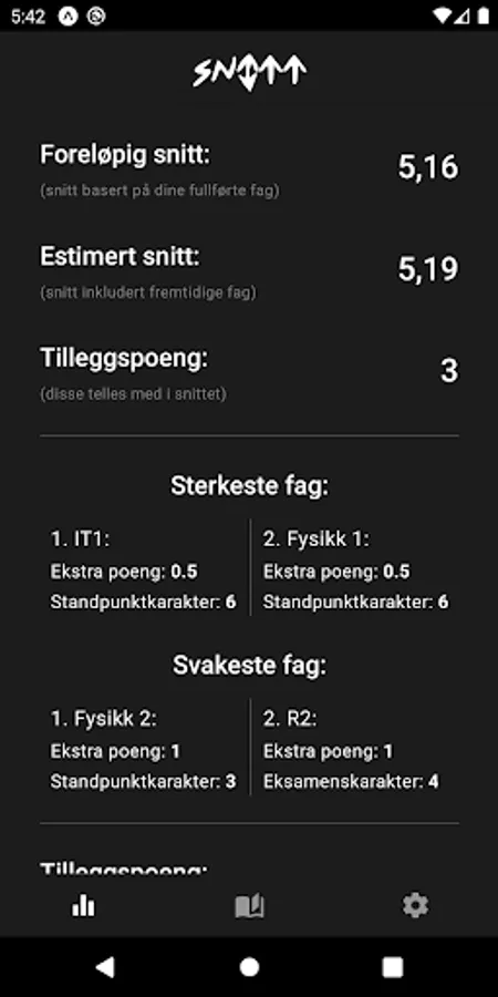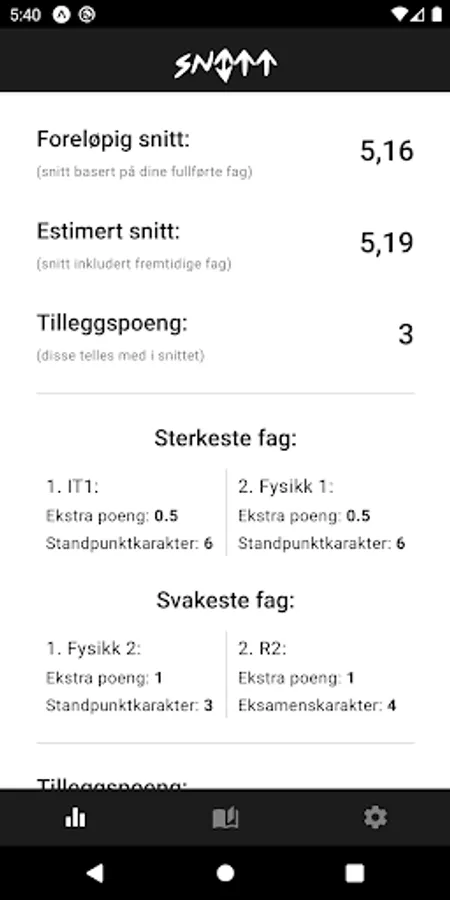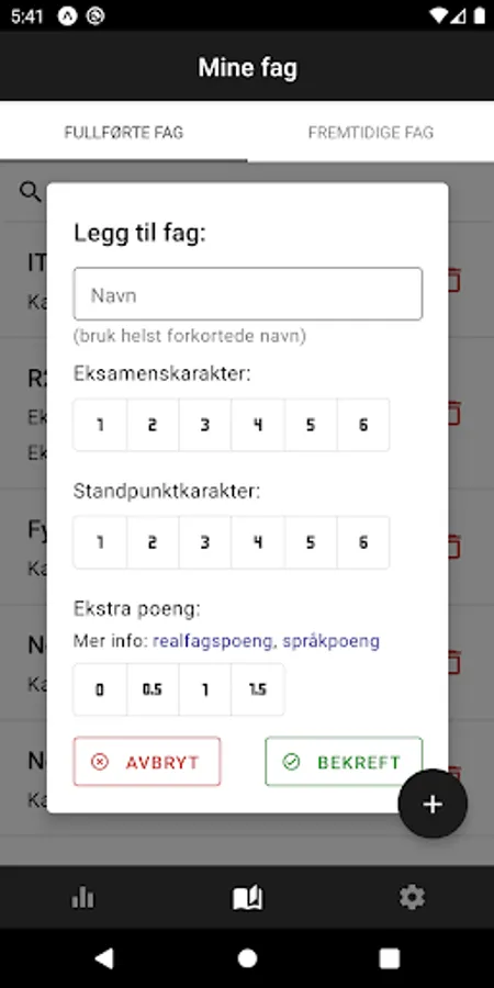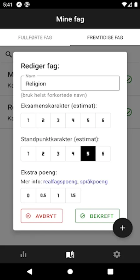 Add your completed and future subjects with a grade estimate. The app updates the result immediately. This way you always have control over how certain grades affect your cut.