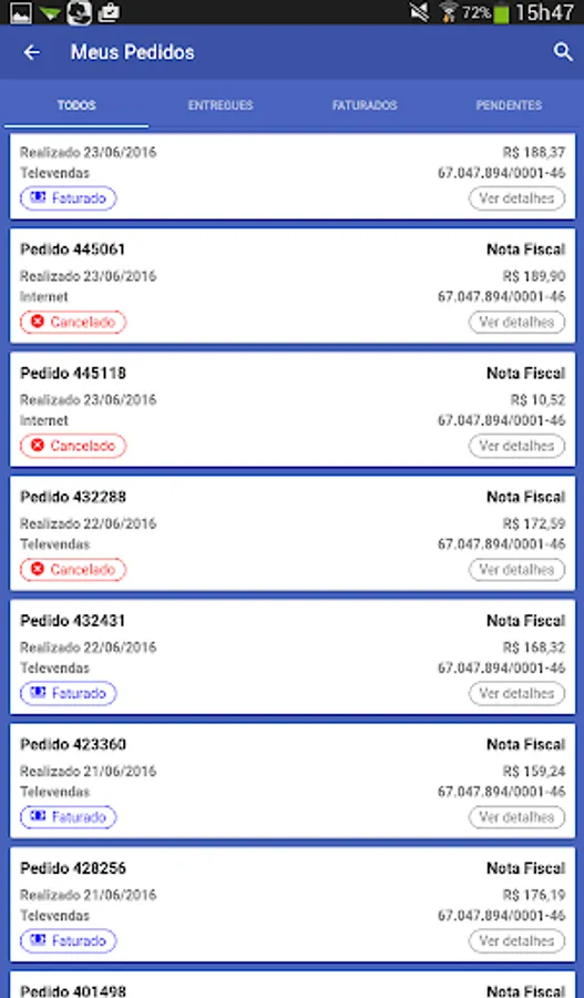 My Orders: With the app, you will be able to track orders placed on any channel. This will let you know if the order was billed and what was billed in real time, with updates every 5 minutes. This way you will never have surprises!