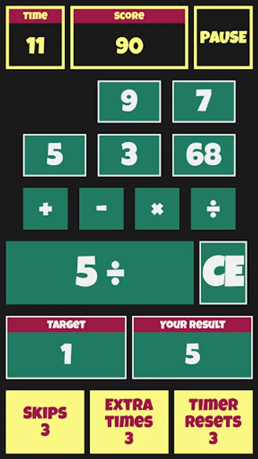 Easy calc - Compose the formula from the offered numbers and calculation operations to get the required result. There are time limit and bonuses. It has 3 levels.