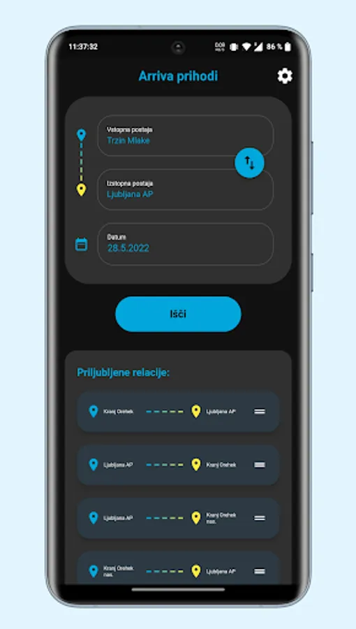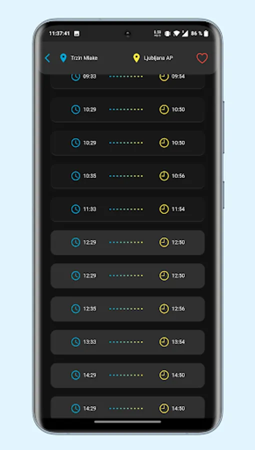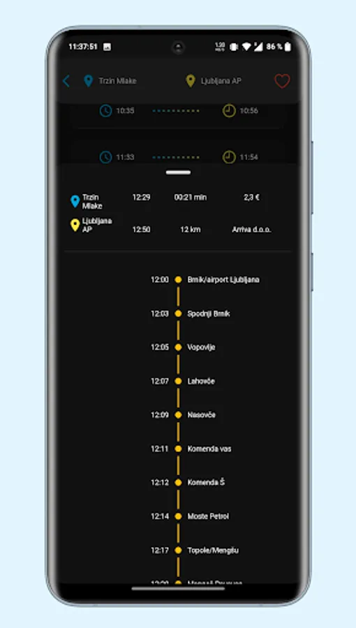 The app shows Arriva timetables from their website. The main advantage is the dark mode and the option to store favorite routes, which the official application lacks.