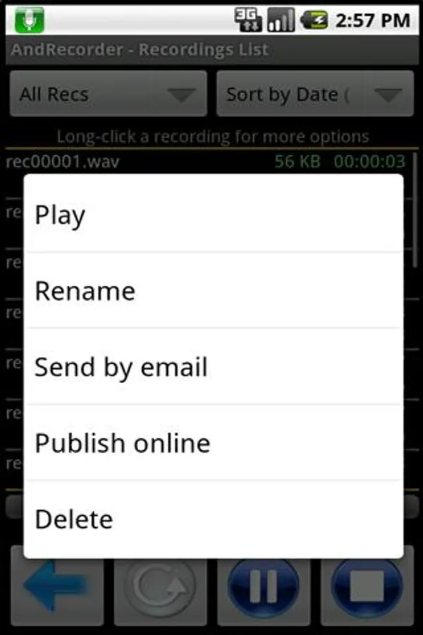 "AndRecorder - Free" is a free sound recorder with an easy to use interface and elaborate functionality, including: