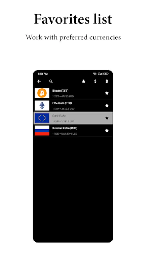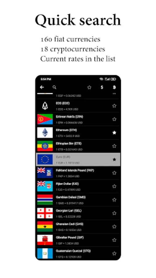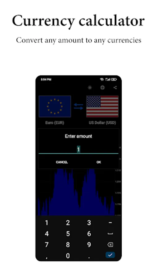 Simple and convenient app for quick review of current exchange rates of 160+ world currencies and 18 cryptocurrencies, their history within different time frames and a currency calculator to immediately evaluate any amounts in another currency