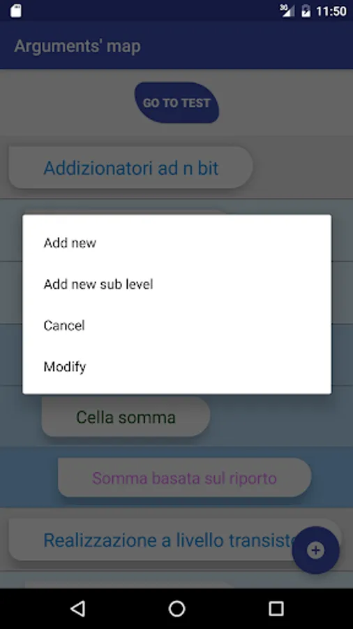 With Mind List create the conceptual map for your consideration. In it you can place all arguments of your exam or just the questions that you think might signing made. You can enter topics at various levels. You can for example enter the chapters of a book and the like under paragraphs levels.