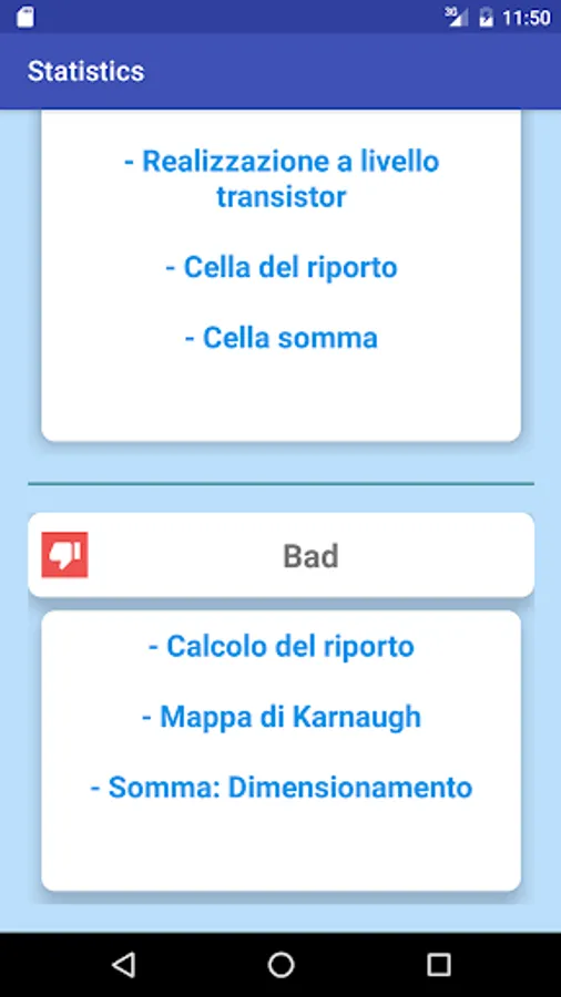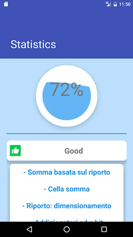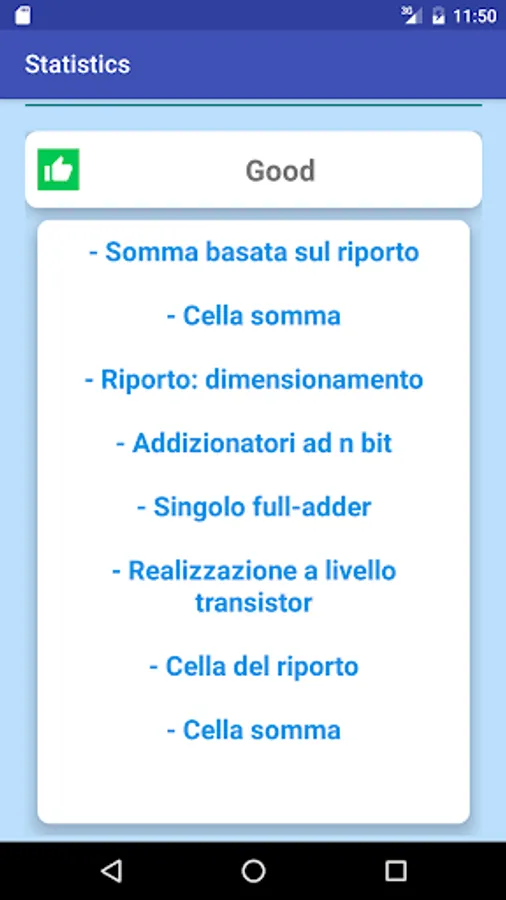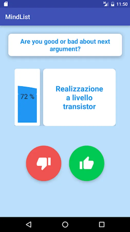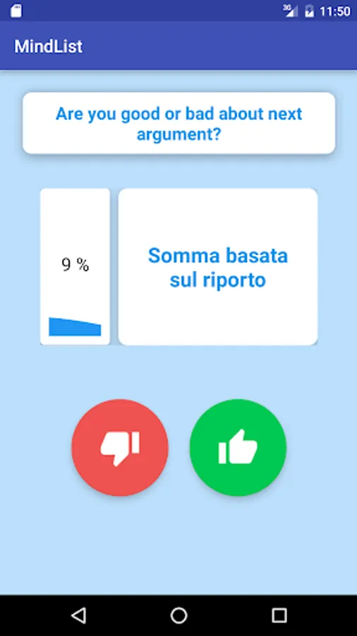 Mind List offer you a random subjects from those you entered. Press the button according to your preparation on that specific topic (good or brush up) trying to be as self-critical as possible. This training allows you to develop even better your sense of self-criticism.
