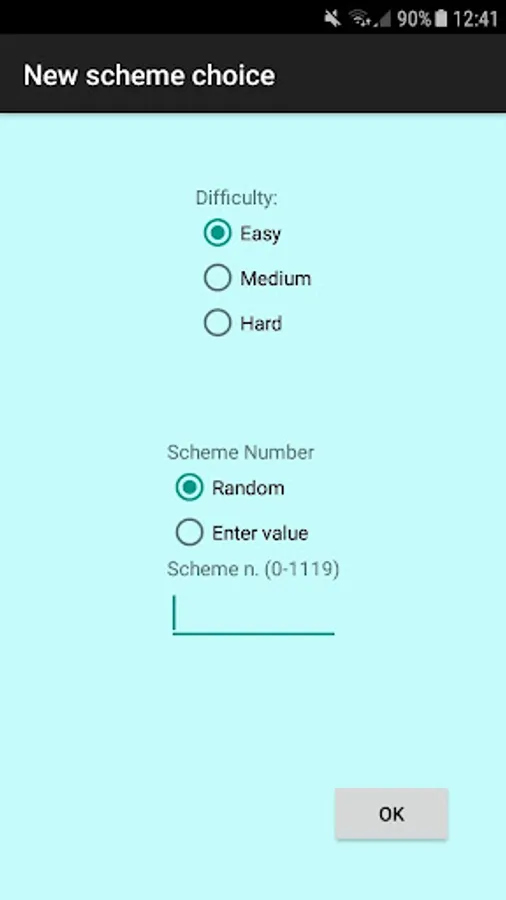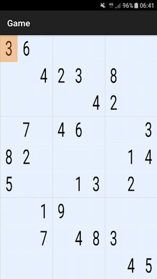 Easy level of difficulty consist in a initial schema with 27 numbers, medium difficulty schema consist in a initial schema of 25 numbers, at last hard difficulty consist in a initial schema of 23 numbers.