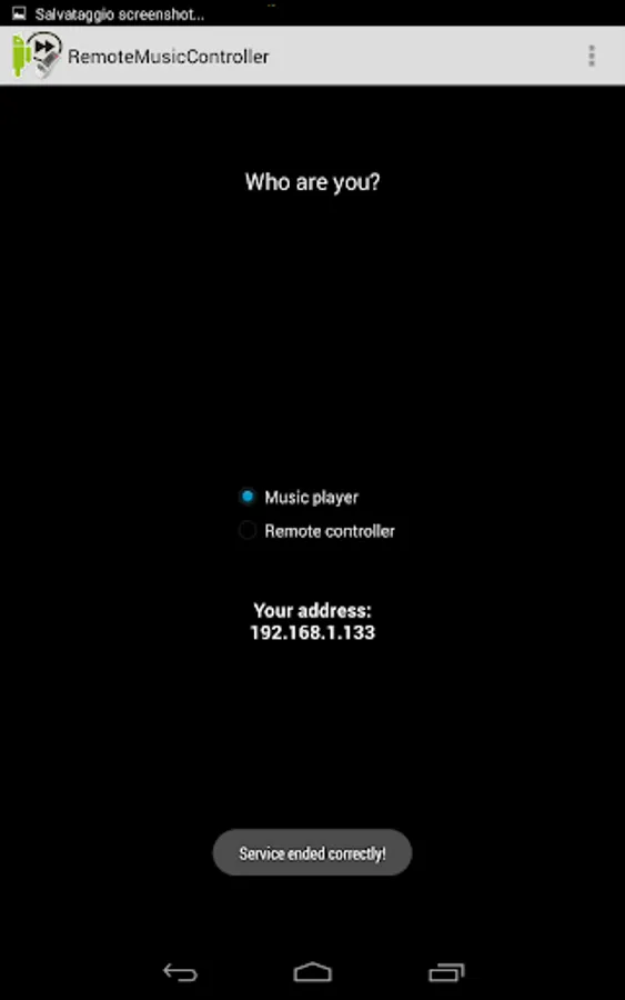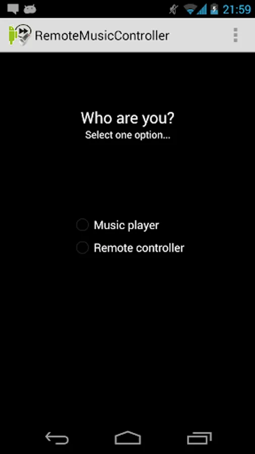 -Turn on the music on the device you want to control and you can start to use Remote Music Controller. The first screen allow you to select Music Player.