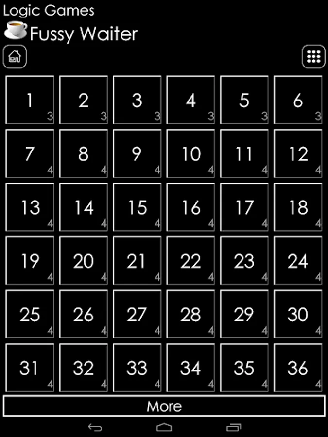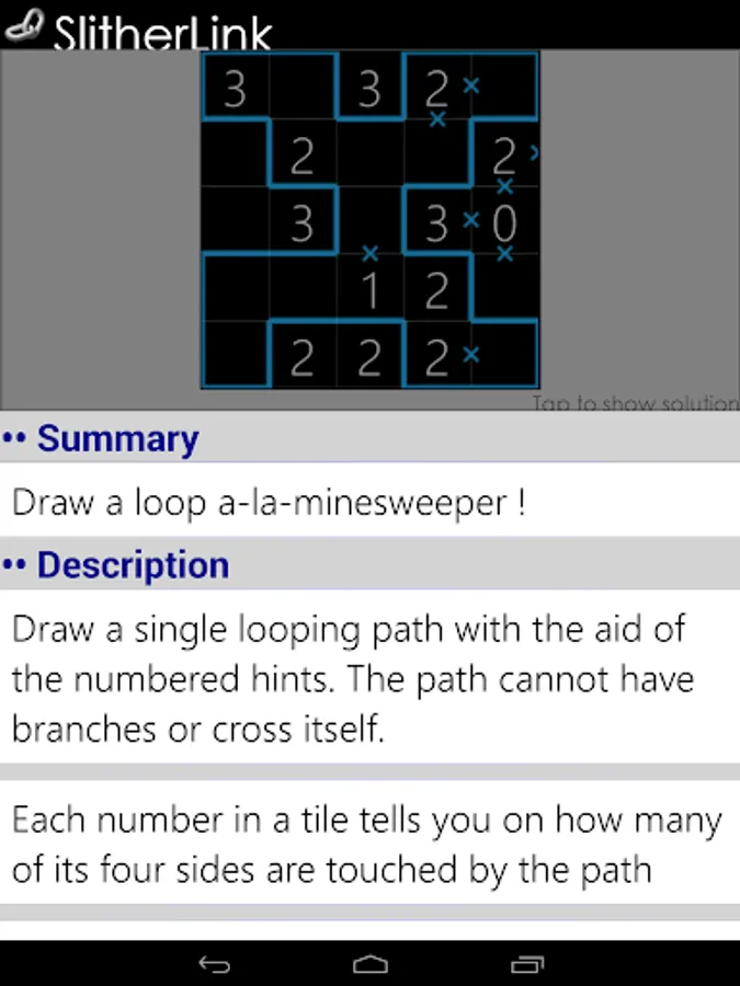 Choose among increasingly difficult and big puzzle levels, save your progress, undo, restart and take advantage of the hints to keep going when stuck.