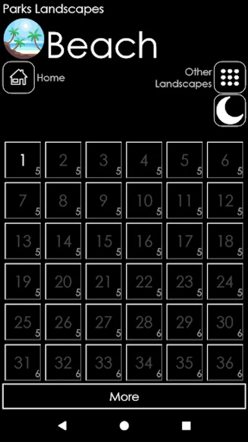 The levels are divided in 7 Landscapes with Themed graphics and music with Progressive unlocking