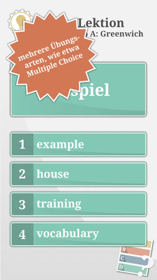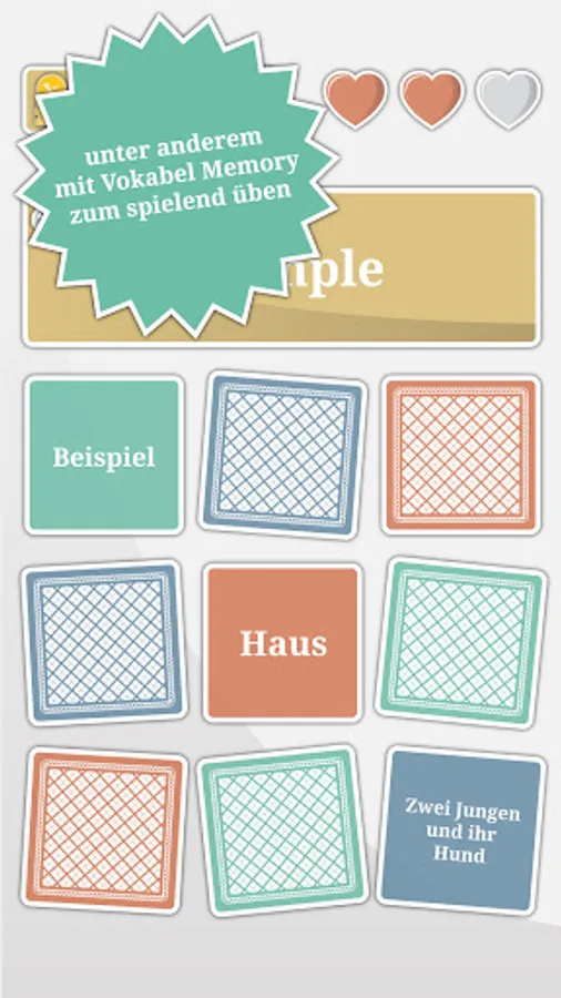 Our vocabulary app offers you three different exercise methods that adapt to your level of knowledge.