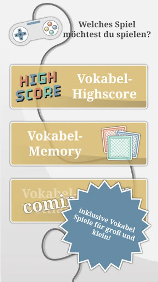The vocabulary trainer combines practice with small vocabulary games. Our games are age-appropriate so that schoolchildren can also play with words without any problems. So you can loosen up every vocabulary exercise.