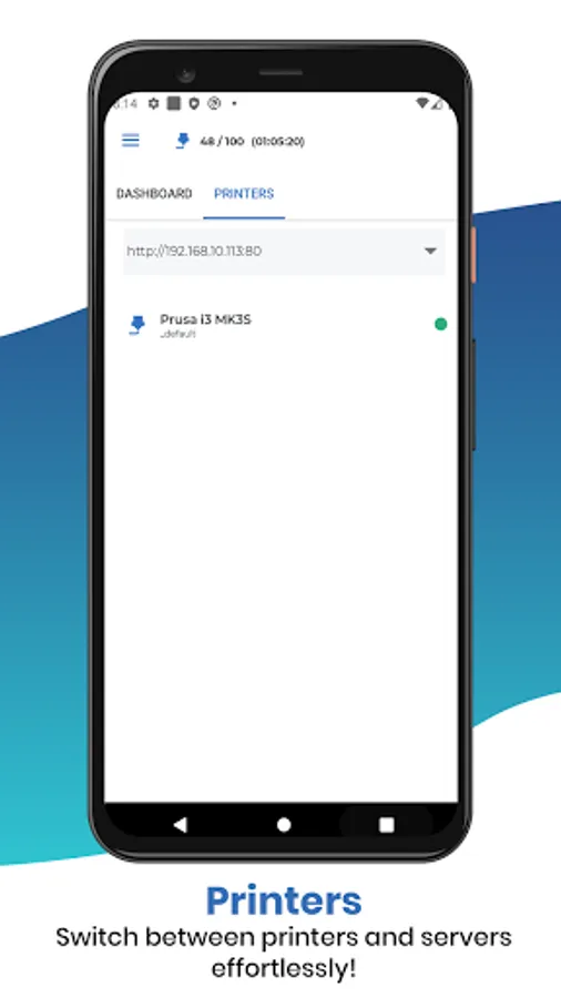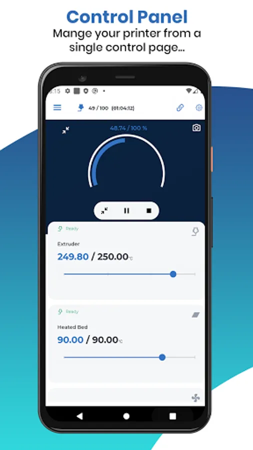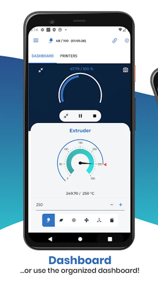 Please note that we are not responsable of any demage or failed prints caused by using or misusing our app. We recommend you to never control your printer when you are not in the same room or nearby. This includes, among other things, the control of the printer axis, pausing and resuming prints, remotely control temperatures and so on. It's also commonly recommended to never leave your printer unattended! The use of this app is on your own risk.