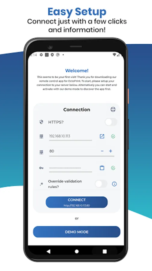 We're glad to have you here and we are eager to introduce you our brand new app to remote control your OctoPrint server directly from your phone or tablet! The app is completely free, without any ads and any in-app purchases.