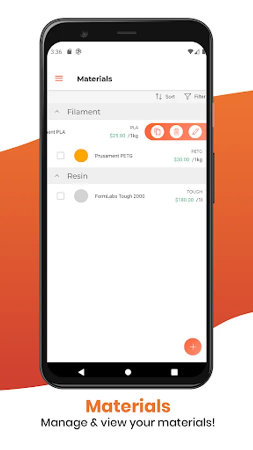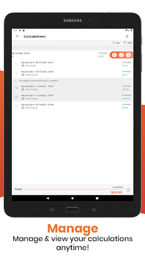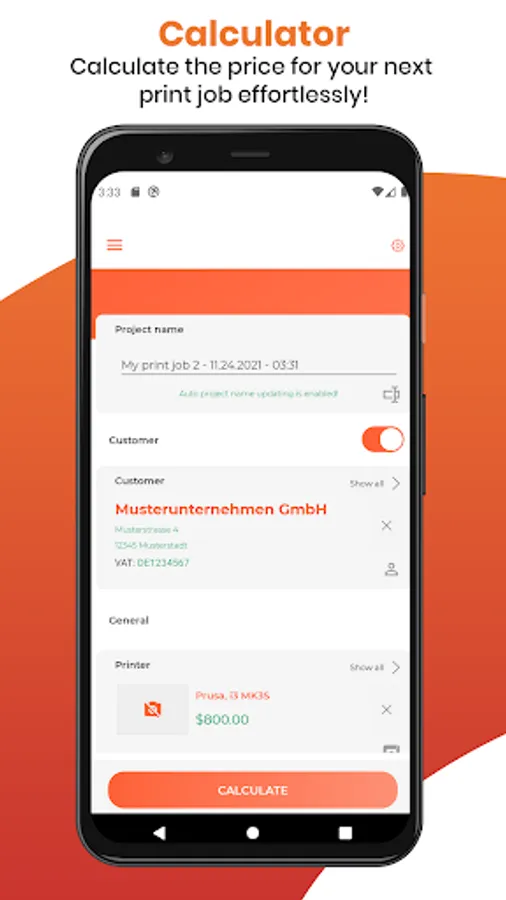 This app allows you to manage your printers, materials, worksteps, customers and my more! With this information stored on your device, you can calculate your prints in just a few clicks.
