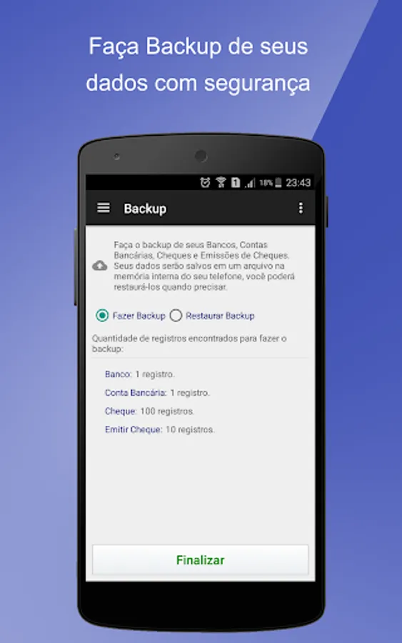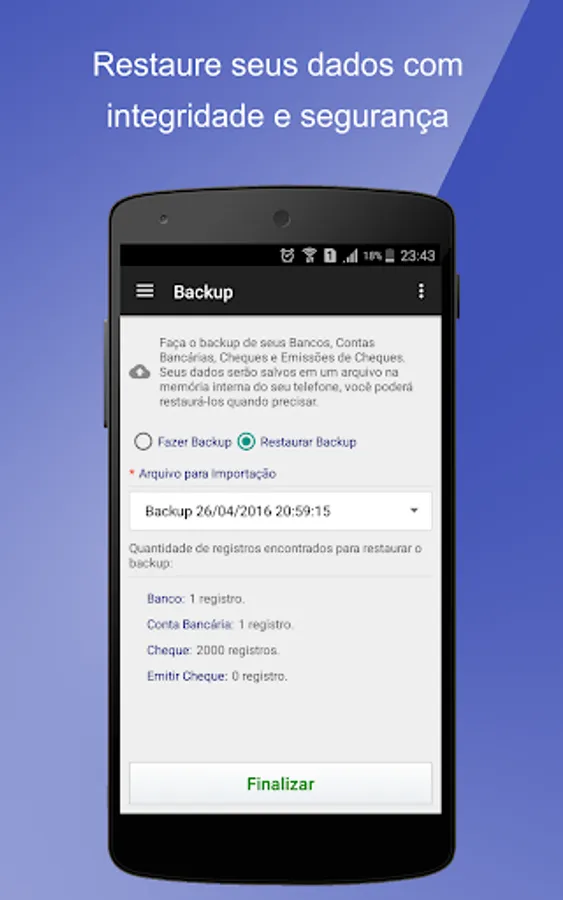Does not require Internet access which is advantage for where you lit it and view all your checks, including the next to be compensated. You control the situations of checks as Aborted, blocked, Compensated and Returned.