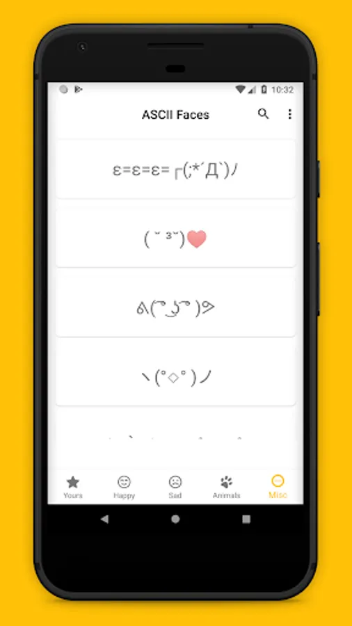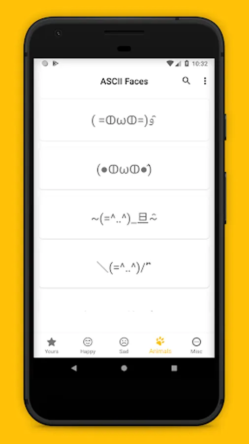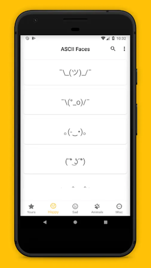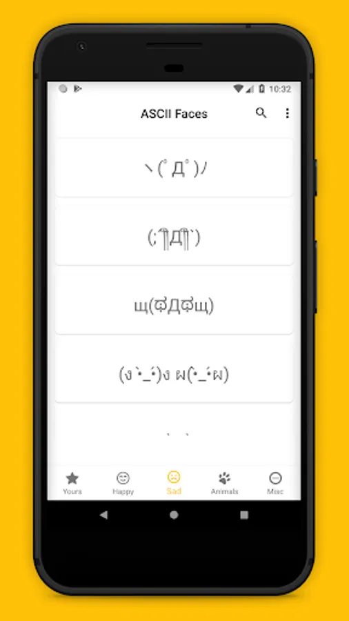 Tap on any ascii emoticon to copy it to the clipboard.