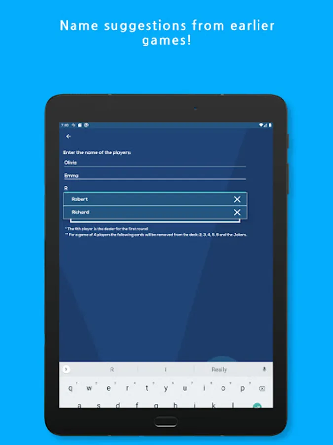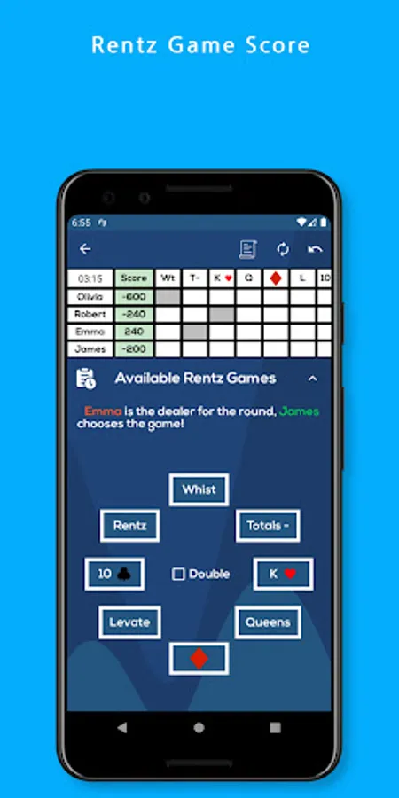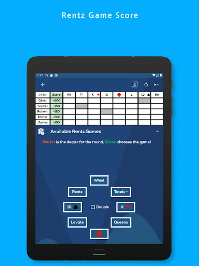 Keep the score for the whist game and the rentz game, all in one simple app.