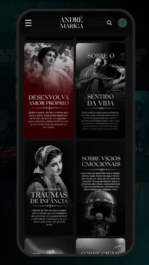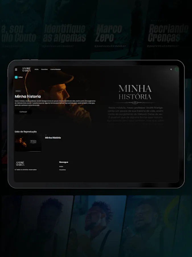 The Andre Mariga app is the right channel for those who want to learn about relationships, personal development and maturation. It offers students the possibility to build a better future in various areas of life. The app has access to all courses with the "Andre Mariga" seal, such as training for therapists, the Sherlock method, BigBoss, Cease de ser, among others, in addition to the subscription to the exclusive club of students who want to go a step further in their own individual maturation process. Welcome to)!