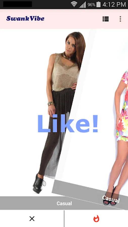 You can swipe right on outfit you like, or left on outfit you don't like.