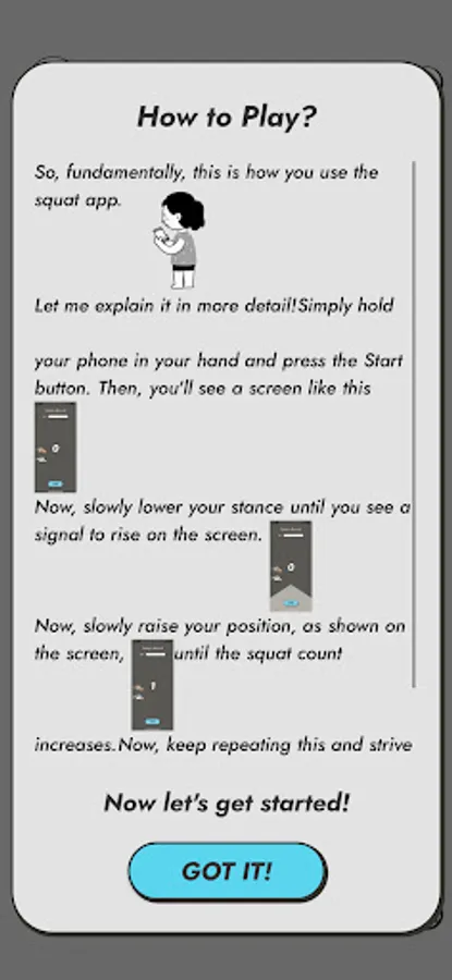 * Smart squat counting: Automatically counts your squats as you hold your phone. Enjoy the convenience and maintain a consistent workout routine.