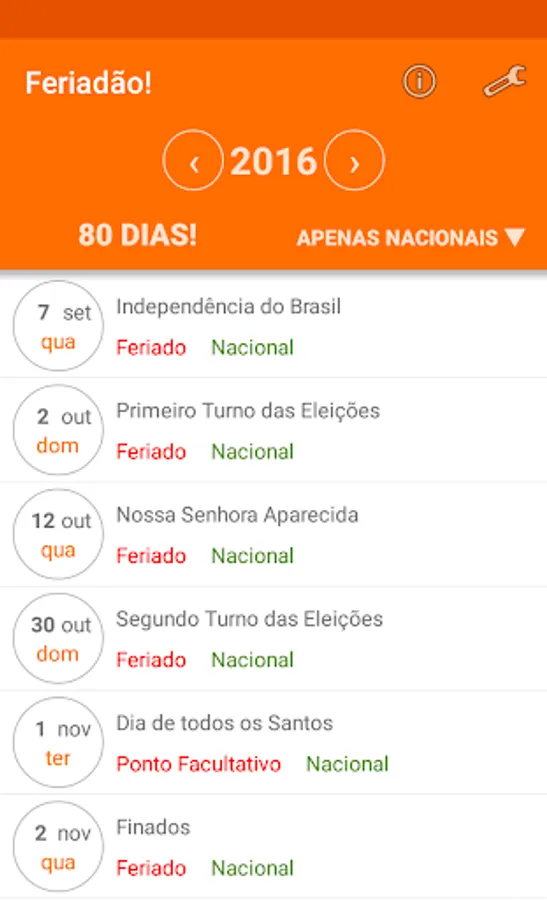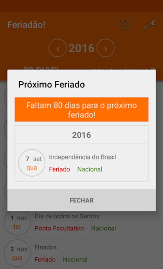 With the holiday weekend! you will be inside the holidays in Brazil and their states. Moreover, it is possible to know how many days are left until the next holiday or any other interest.