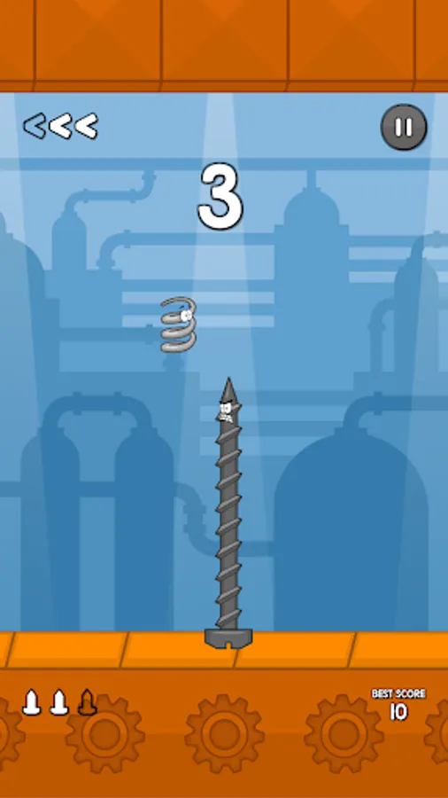 You're going to control the metal spring called Greg Spring, which is on a conveyor belt. You can't let yourself be carried away by it and you should be careful with the screws that come toward you. You can't touch the screws, the only alternative is to jump over them. Each screw you jump over successfully, a point is scored. So, try to score as many points as you can!