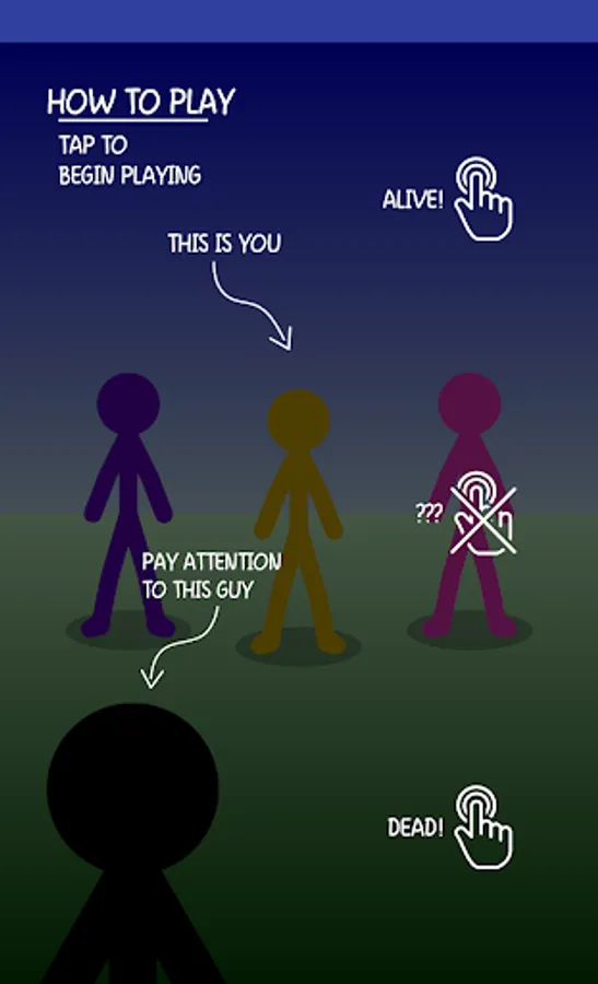 - If the leader says “DEAD!” you get down (touch the lower area of the screen)