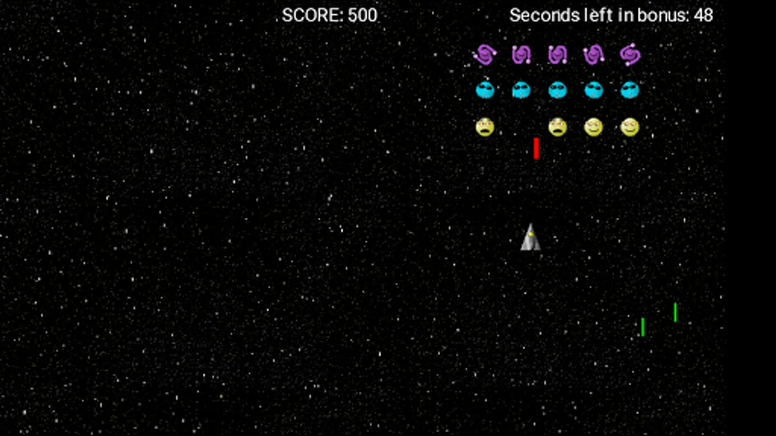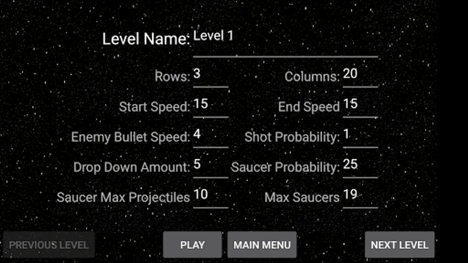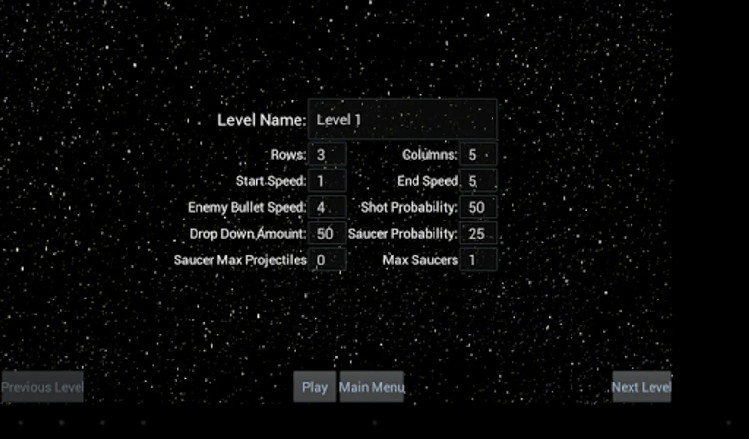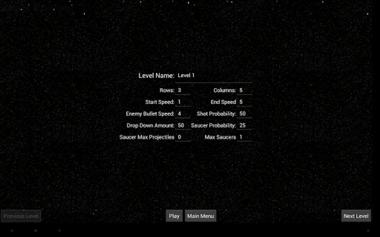 I suggest experimenting using the game editor. Using the game editor you can create some truly weird and interesting levels. I love making levels where the space invaders move so fast they fly off the edge of the screen. Where do they go? I'm not sure but they'll be back. Once, when they came back, they each had an ice-cream cone. I want an ice cream. Why can't I move off the side of the screen? They're all having a party without me! No wonder they are invading: they are a bunch of jerks.