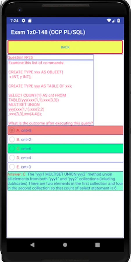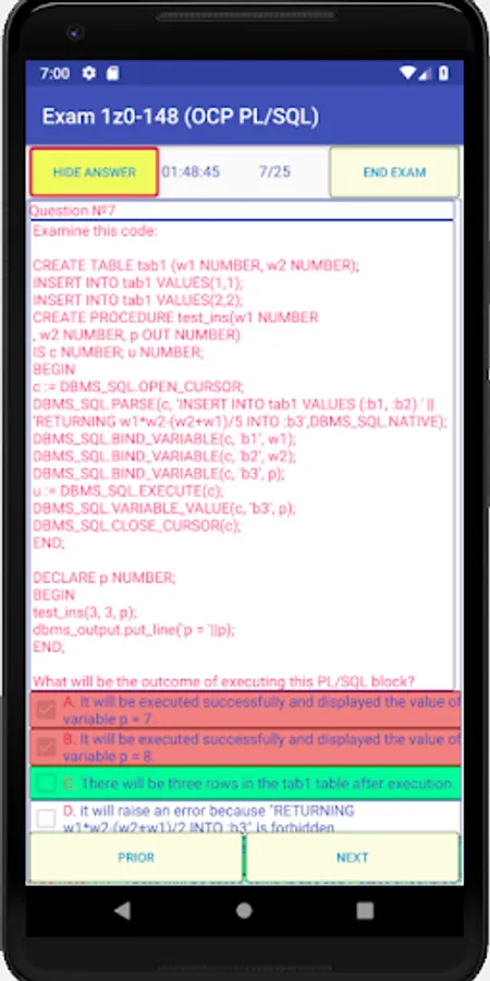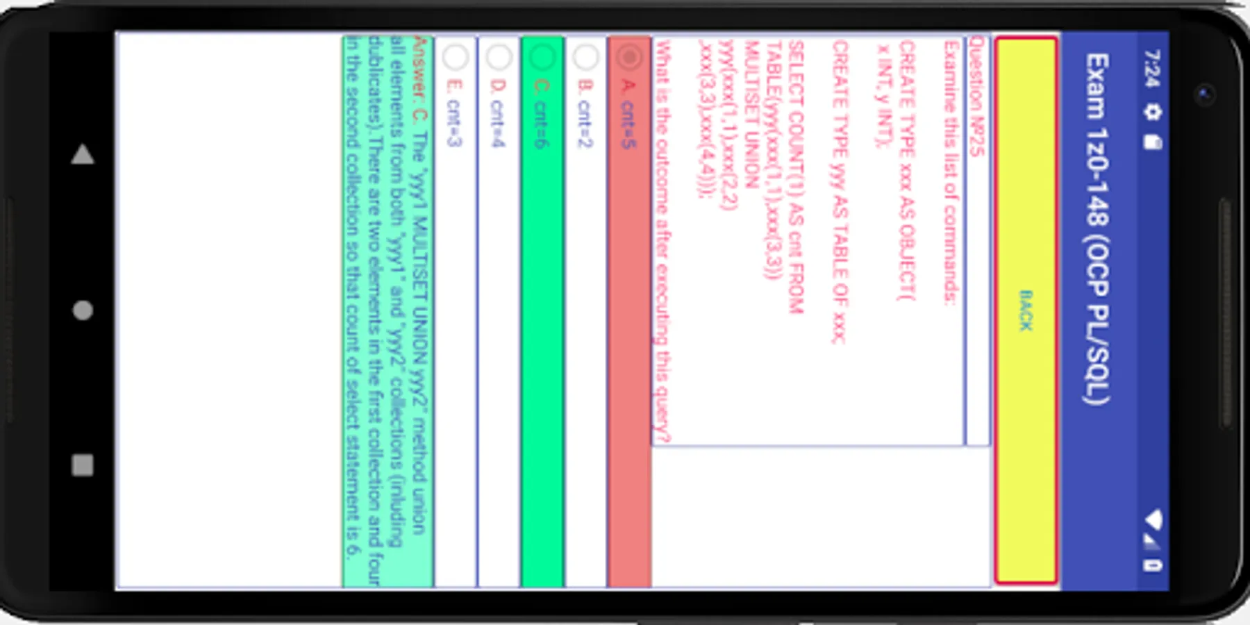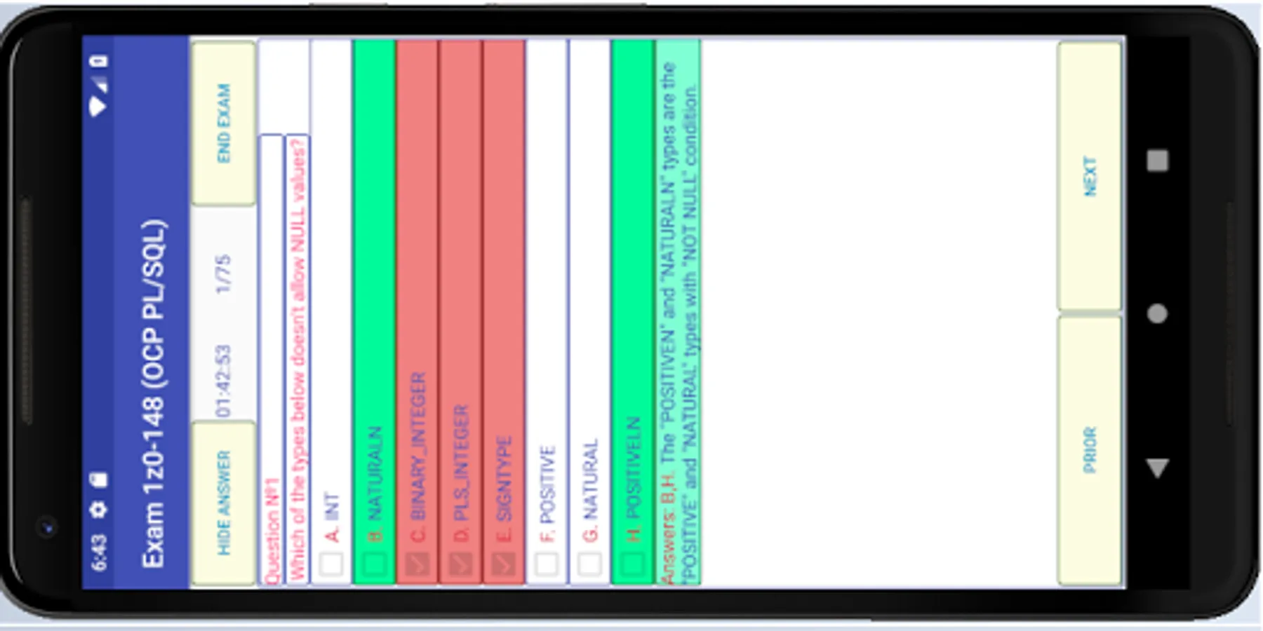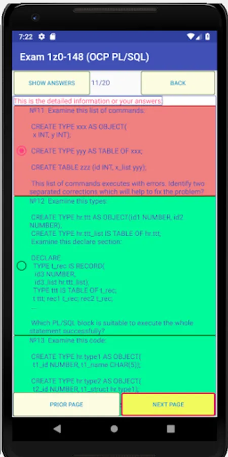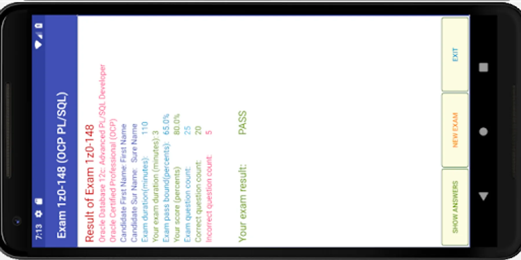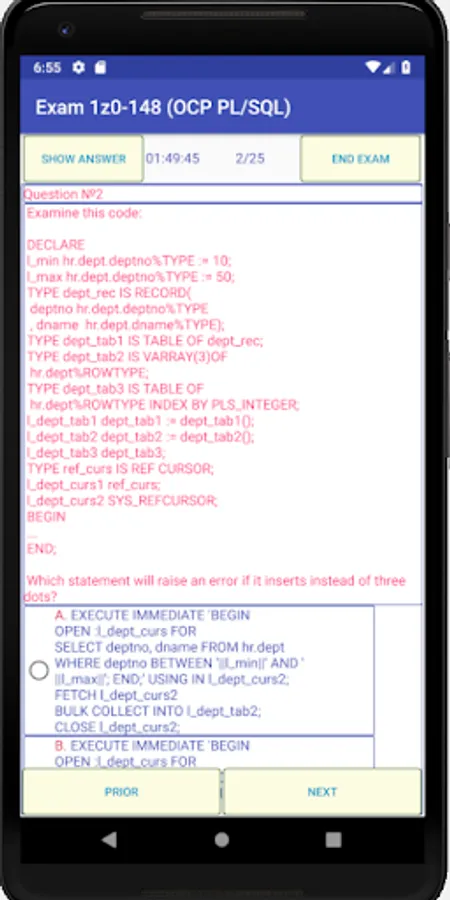 This application allows to prepare to take the 1z0-148 exam which is essential to obtain the advanced PL/SQL developer certificate (OCP). The application is a mobile analogy of the real oracle 1z0-148 exam but the questions in this application are more complicated. Some questions in this application will never appear in the real exam but they are necessary for deeply understanding PL/SQL programing skills. The application consists of 300 questions which are divided into 12 topics. Each topic includes 25 questions. It is possible to choose the questions specifying the concrete topics from the list.
