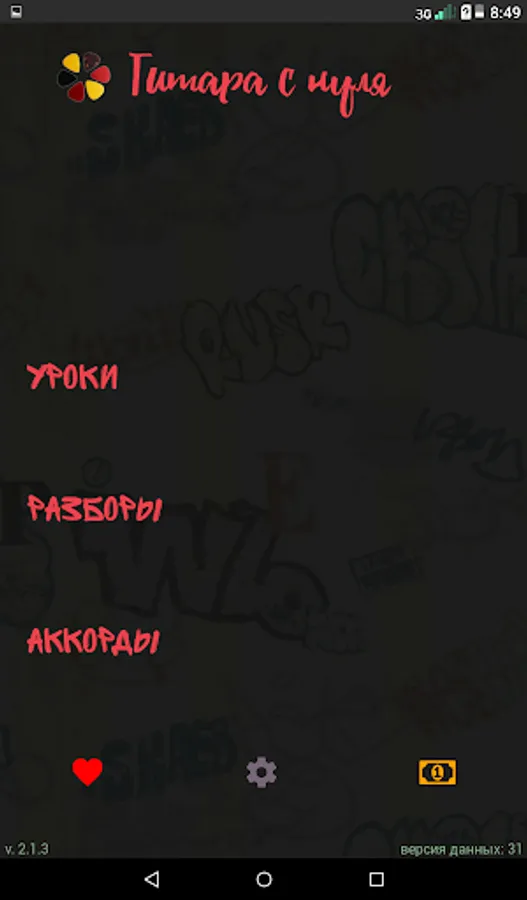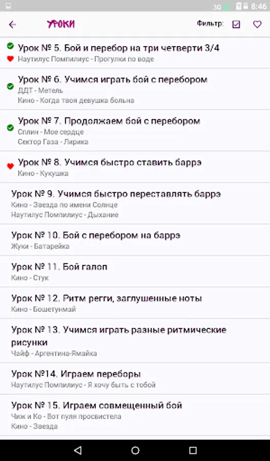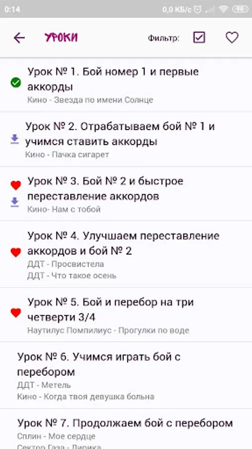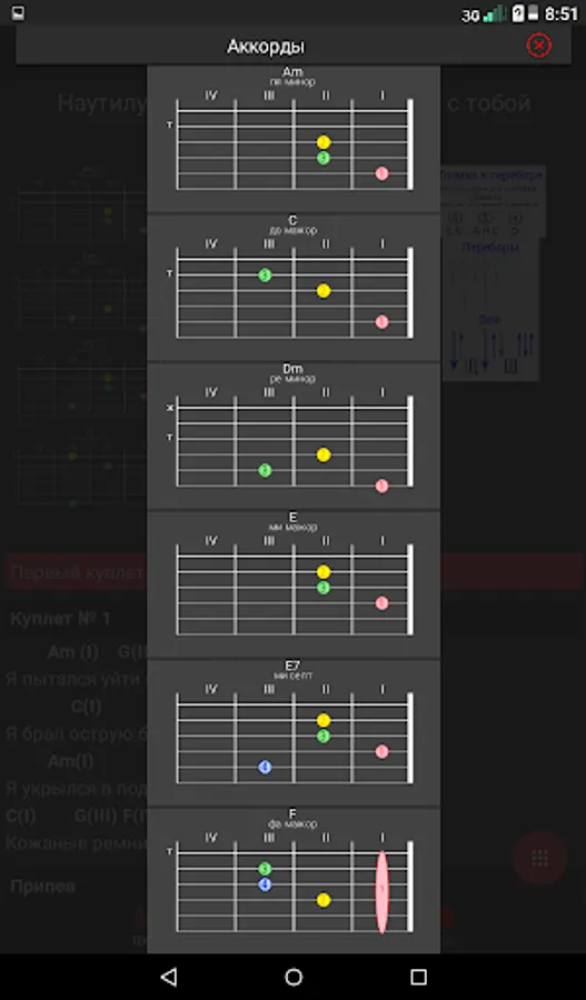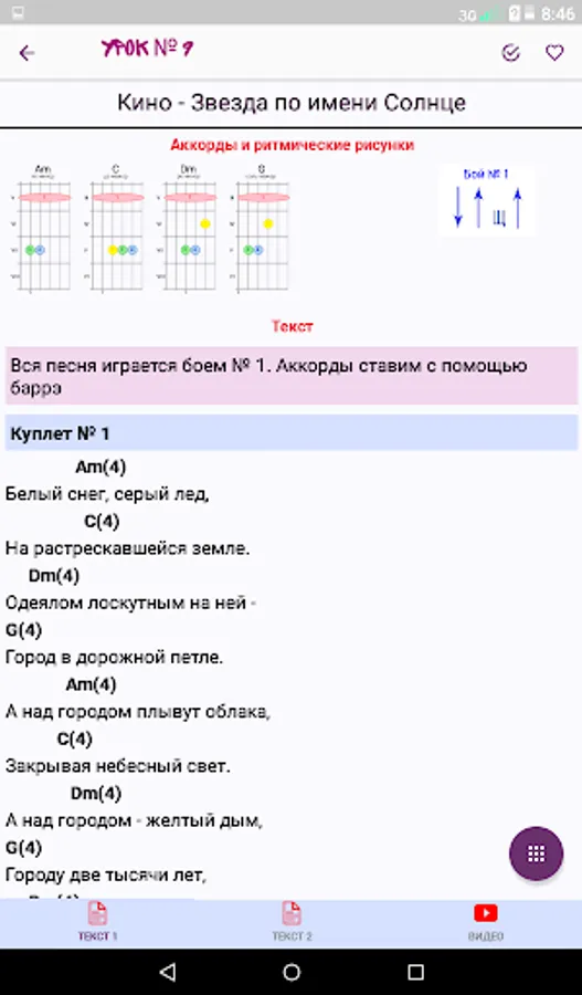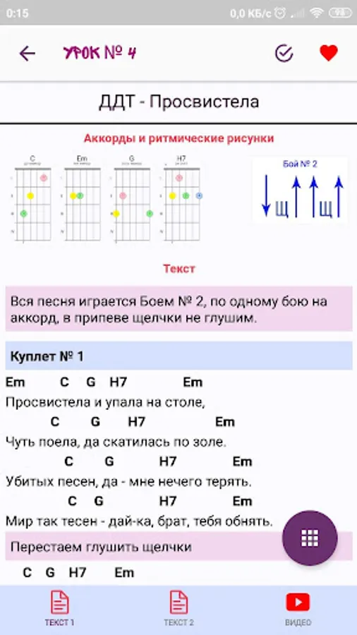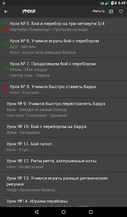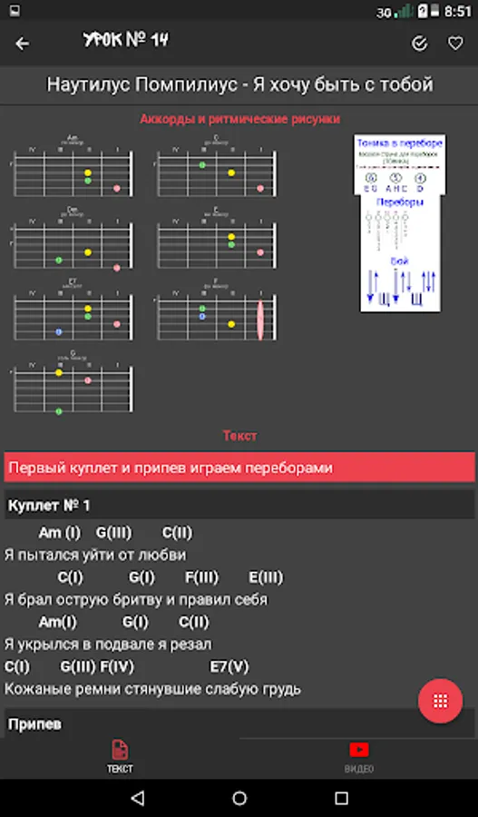 The appendix contains lessons, which you gradually, step by step, master, learn all the tricks of playing the guitar. Already in the fifth lesson you will be able to play three fights and bust, and for the next three lessons you will master the brute force and barrels! Total lessons at the moment - 49!