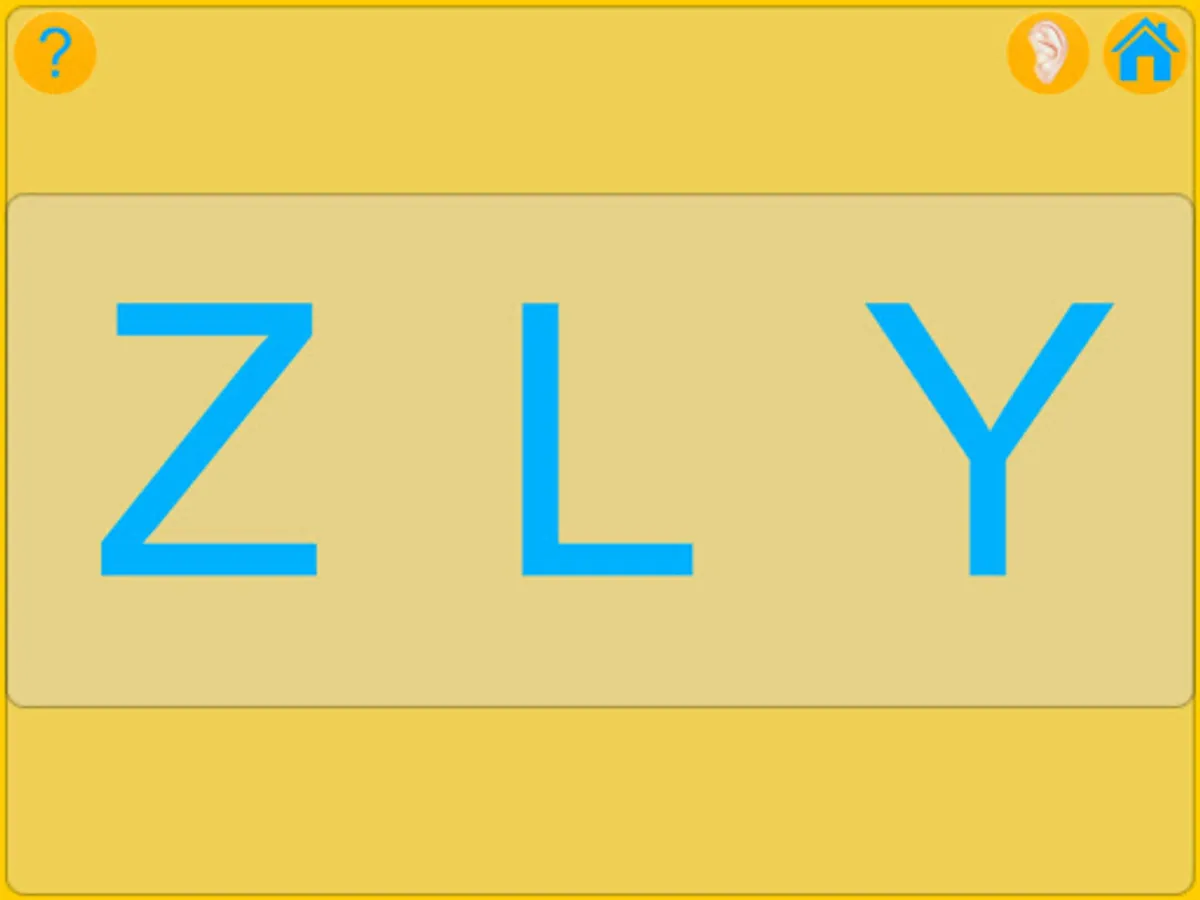 Learn all letters from A to Z. The game works by calling for letter which the player must find among the three provided random letters. The game makes the learning process enjoyable by providing a clear vocalization of each letter when called for.