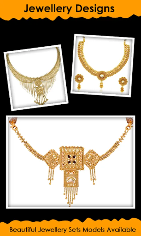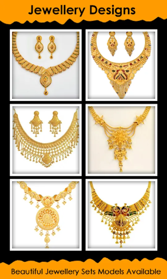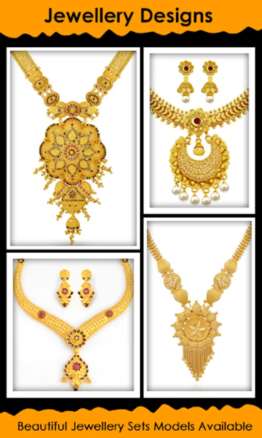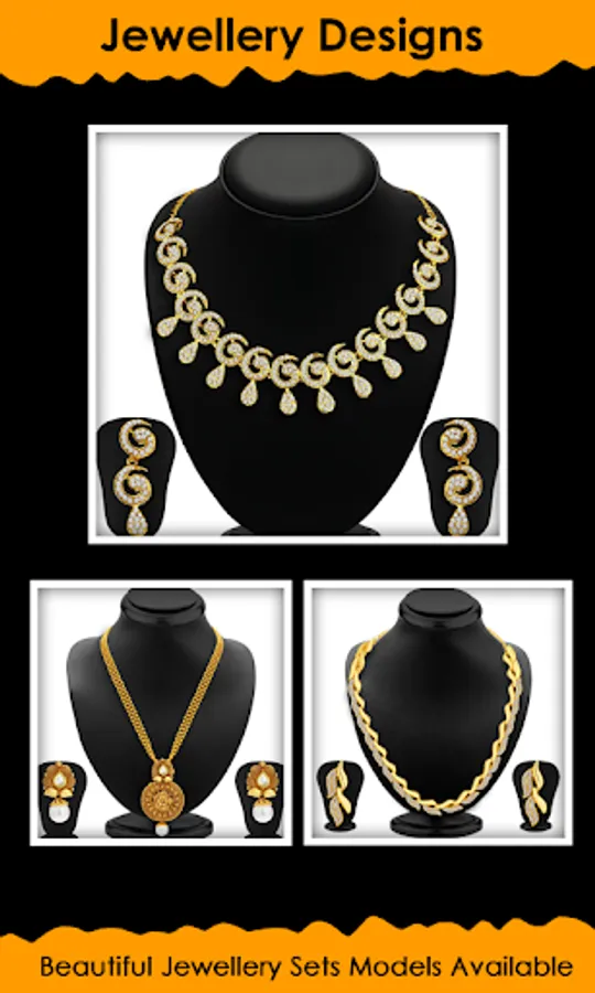 Accumulation of Awesome Diamond and Gold Jewelry sets. "Jewellery Designs New" Photo Editor is an allowed to utilized. Heaps of Amazing assortment of Jewelry, this "Jewelry Sets Designs" application offers influences it novel to style. Numerous girls need to think about Indian adornments and about gems plan and style, best gems with the most well-known gems outline application "Jewelry Sets Designs". For the most part partial to school young ladies, we have every single such gathering in our Latest Jewelry Designs application.