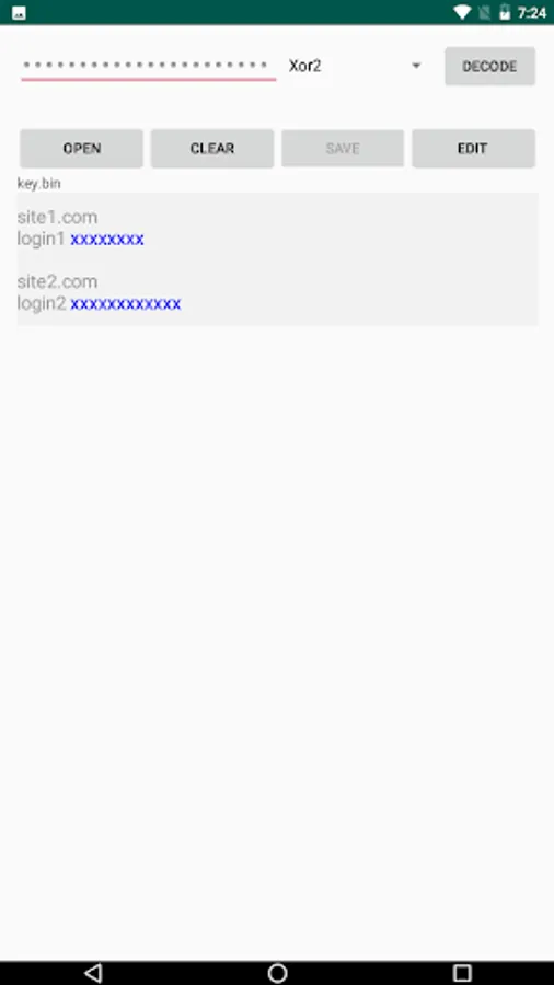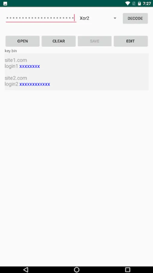 An application for safely storing passwords on your device in encrypted form. It's safe and easy. Doesn't transmit anything to the Internet. The application only needs file permissions. If you want your passwords to be available on other devices, you can save them to Google Drive yourself. Passwords between double quotes will be hidden. If they contain double quotes, just type them twice as in the video. All text is encrypted whether it contains double quotes or not.