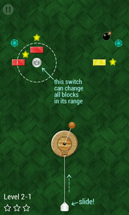 Rotary is a unique and simple "Brain & Puzzle" game. Hit blocks by using a ball that moves in rotational path. Control radius of the path by moving the pendulum. Catch all stars but be careful with obstacles that could destroy the ball. Get certain bonus to help complete some difficult levels. Don't forget to reach many achievements.