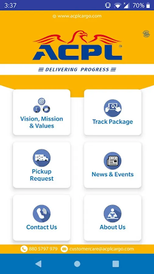 This app helps in keeping track of full ecosystem of ACPL. From tracking package in transit to generating new pickup requests for ACPL(Avinash Cargo Private Limited) this app manages all. You can also get the list of all delivery centers of ACPL throughout India.