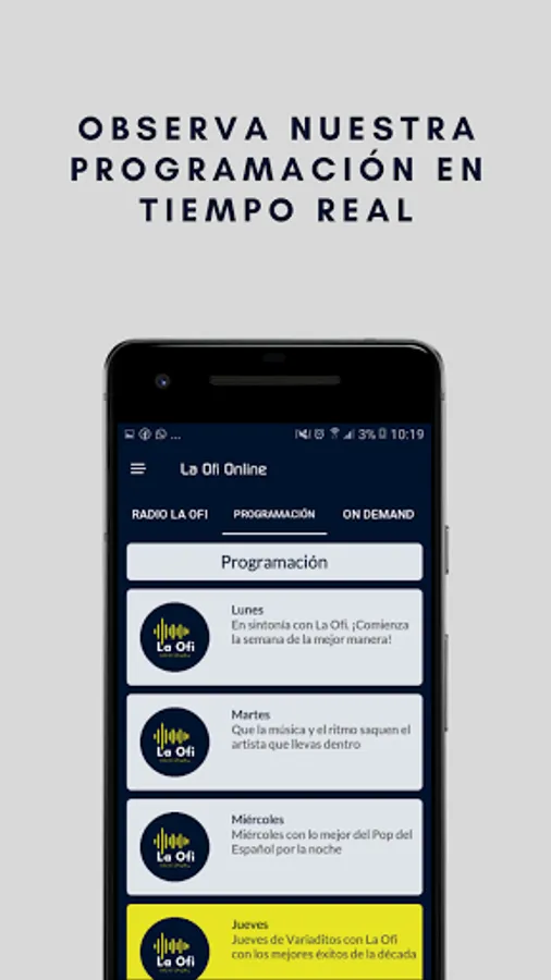 Radio La Ofi Online is an independent radio station, with diverse content suitable for all audiences. Among our segments are those related to music and culture. Radio La Ofi Online operates in Sangolquí, and broadcasts every day of the week through our website, application and smart players. Radio La Ofi also offers the community live programs through its Facebook page, where we present local artists, varied music, dance and reports. We accommodate all your ideas. Be part of Radio La Ofi Online and don't miss out on our incredible collection of programs.