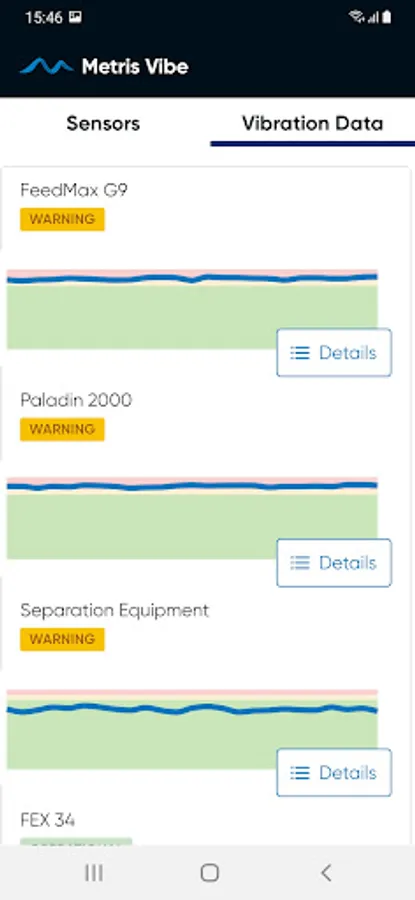 Metris Vibe app allows user to use wireless vibrations sensors (Metris Vibe, Metris Vibe Ex) acquired by ANDRITZ. The main purpose of the app is to collect vibration and temperature measurements from the Vibe sensors via Bluetooth and to directly transfer the data to the Metris Server. With Metris Vibe app the user can change sensors settings and update the firmware.