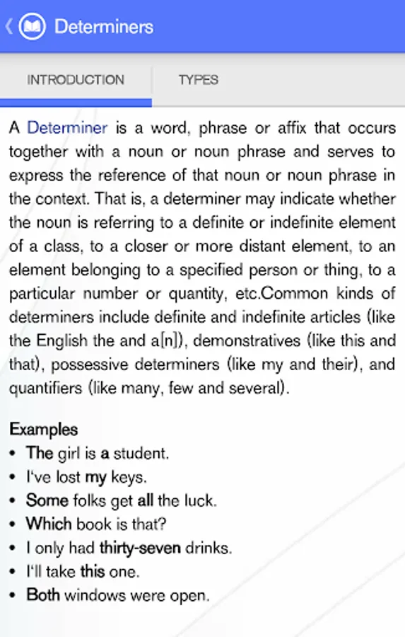 This android application will help to improve your English grammar. Keep this application always in your pocket. give us feedback and join our English grammar communities for more updates.