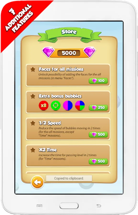 In the "Face" section you can choose up to 3 photos for each mission. These photos will replace some of the bubbles in the selected mission. In each mission there are 24 levels. For every 3 levels defined various caricatures for the selected faces.