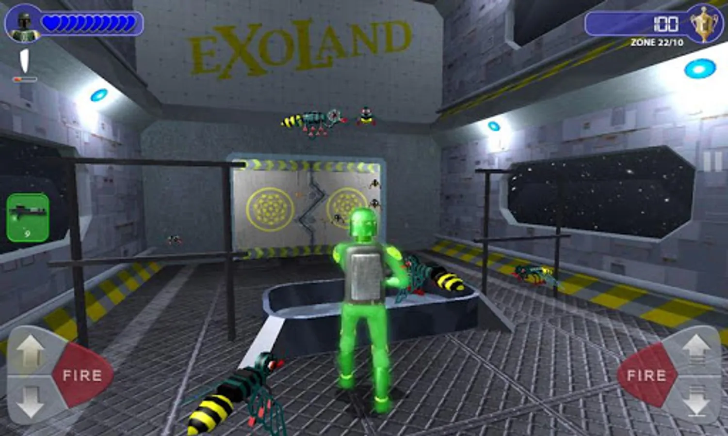 The player takes control of a futuristic soldier across 5 levels. Each level have 10 rooms. The rooms that make up these levels are filled with various generic aliens as well as gun emplacements, homing missiles, landmines and other hazards. The player can defend himself with a gun, rocket-propelled grenades, shields and other. Up to 5 different weapons are effective against different enemies.
