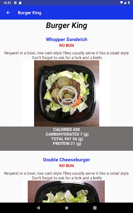 If you follow Keto diet , you probably have a cookbook , recipes or tracker for keto meals at home. But what about those days you decide to dine out or can't cook ? Our app shows low carb fast food items and shows you how you can modify regular restaurant meal into a keto diet approved delicious food meal plan . Also helpful for people on Atkins diet and Paleo diet . Keto diet tracker , macro tracker may also used since each of displayed meals show carbs , calories ,fat and protein.