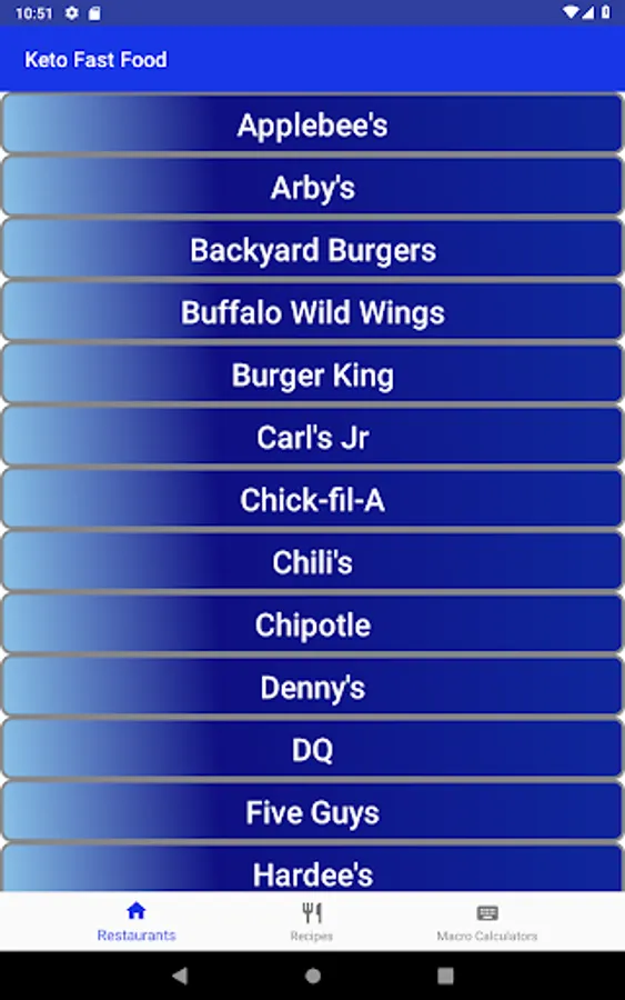 Our app lists top fast food restaurants and low carb Keto approved meal items. They are all keto diet approved for your weight loss and each meal also displays carbs , calories , fat and protein .Also included a Keto and Macro calculator . Macro calculator lets you know how many carbs you are allowed to cnsume while on either Keto , strict Keto or Low Carb diet .Perfect for dieters who use Keto diet tracker or macro calculator ! App shows you how to order those low carb items from a fast food restaurant . We are also planning to add keto diet tracker , macro calculator and tracker this year.