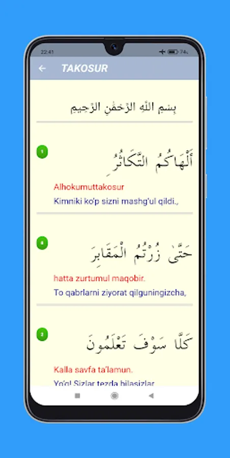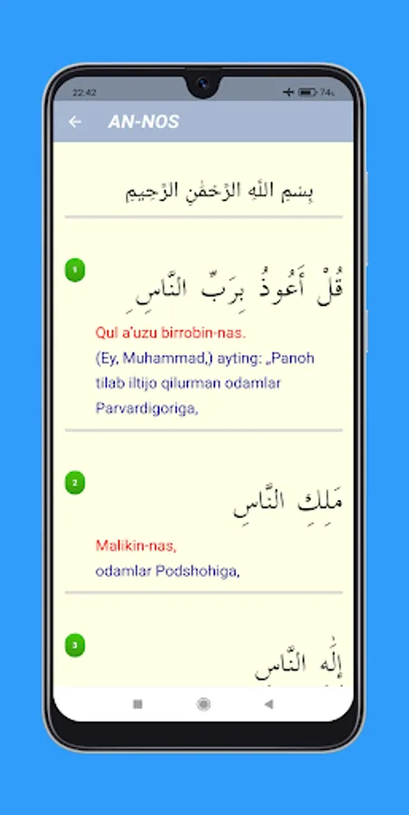 Kichik Mayda Suras from the Qur'an - O‘zbekcha o‘qish va tarjimasi, Arabcha pronunciation.