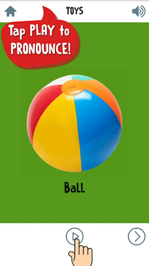 This game is ideal for parents and children to play and enjoy together. Playing is so easy that even a baby can do it without the help of an adult. Baby first words is a first words app for your toddlers, children and kids. You can use this app as baby flash cards or flash cards for toddlers. Teach words for toddlers using this app.