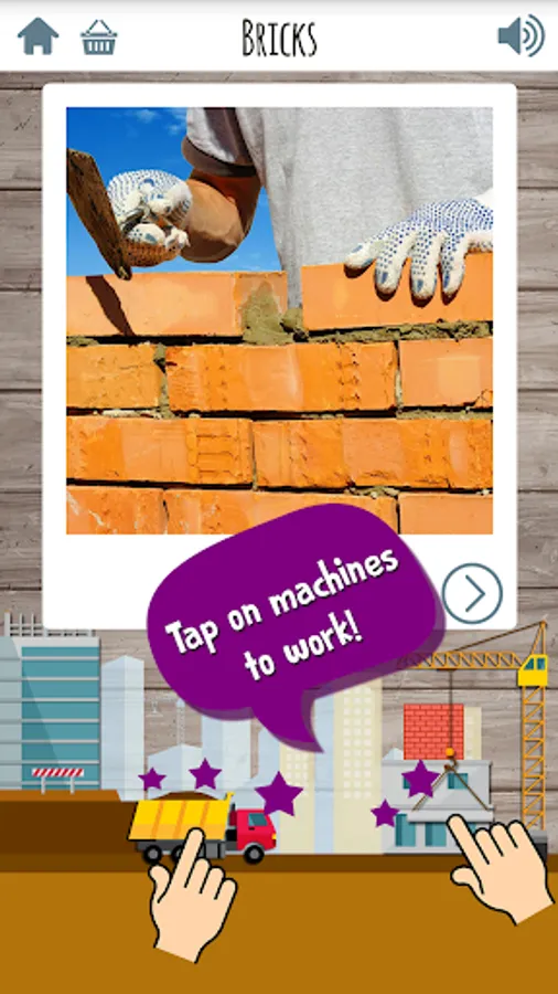 - Brain games for kids: Toddlers will practice by trying to find the correct construction item.