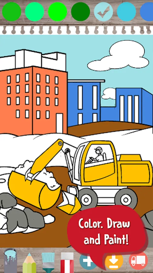 - Drawing game for kids: Kids will draw on empty canvas or on different construction shapes. Kids coloring apps for toddler has different sections. They can use various colors for drawing and can save their drawings. This section is a doodle for kids.