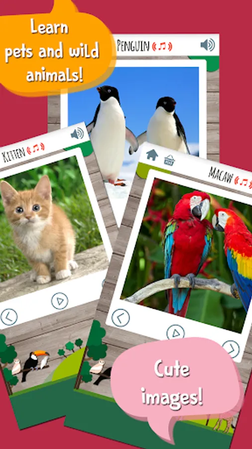 - Nice animations and real sounds of animals with toddler learning games!