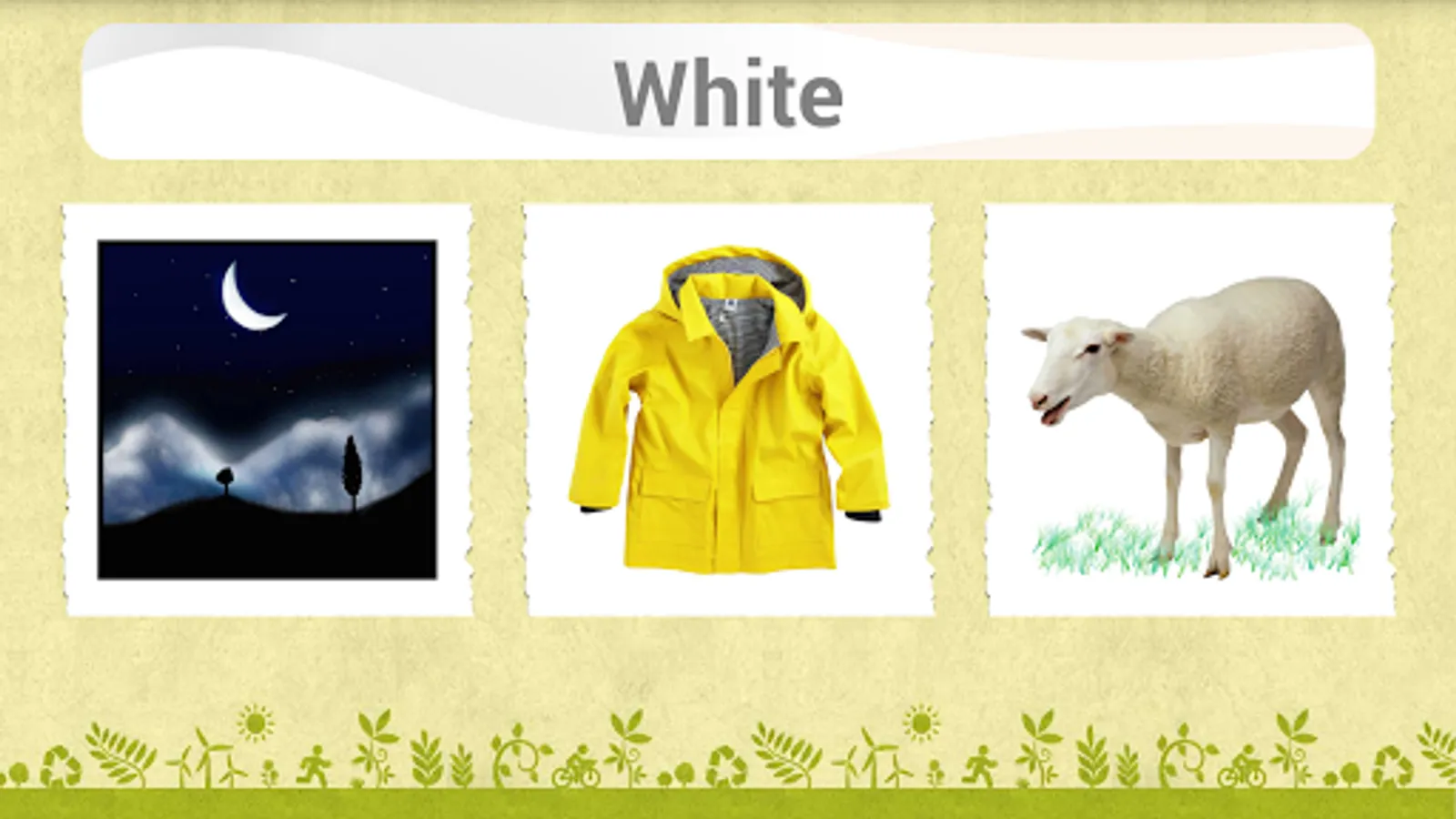 - Children will easily learn eleven colors: red, green, blue, brown, yellow, orange, purple, pink, black, gray and white.