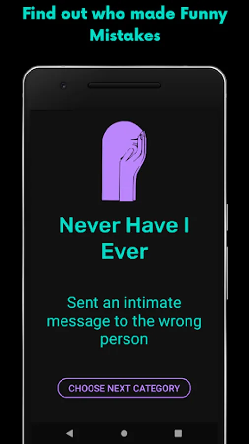 Last but not least, the I never game features engaging and adult-themed sentences that are sure to keep you and your friends entertained for hours. From embarrassing moments to taboo topics, the app's sentence selection is guaranteed to keep the laughs coming. So what are you waiting for? Download the Never have I ever game today and get ready for a night of fun and excitement!